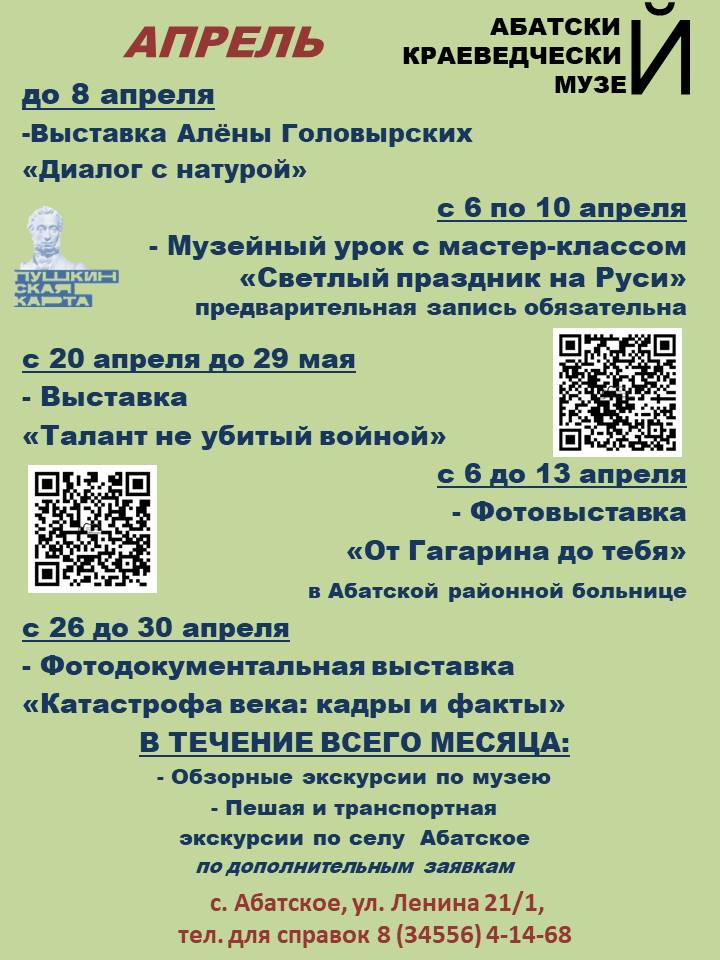 Апрель Опубликовано 01.04.202601.04.2026 автором admin Приходите в музей, мы вас ждем! Все мероприятия доступны по Пушкинской карте.