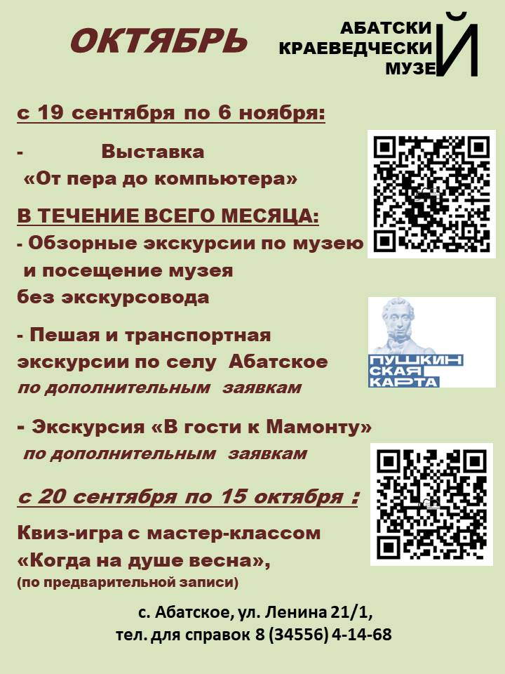 Проведите лето с пользой, ждем вас на мероприятиях музея! Все мероприятия доступны по Пушкинской карте. Запись по телефону 8(34556) 4-14-68